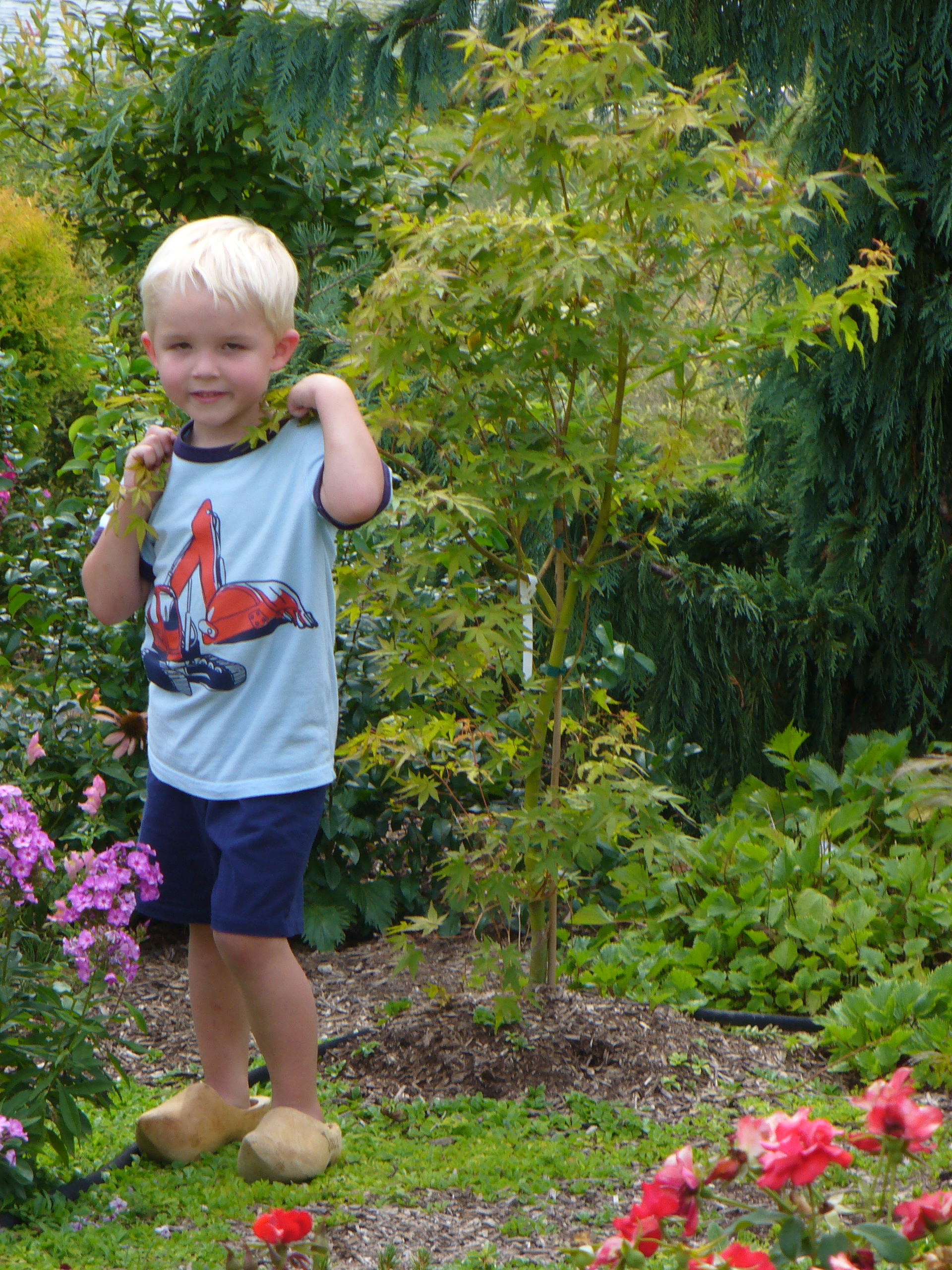 When Porter visited, he delighted in the gardens and discovered a hidden area within the Young’s Weeping Birch, Chamaecyparis ‘Green Arrow’, a Japanese maple, and various perennials, that he called his Fortress of Solitude.  Of course, we adults marveled at his choice of words and instinct for the concept, and we also caught his excitement.