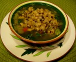 For this healthy, savory, cabbage-legume soup, begin by rinsing and straining the black-eyed peas, and then follow other package directions. (Soak overnight or parboil 5 minutes and let stand an hour prior to further simmering with soup until beans are edible).
