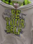 I saw these hoodies in TJMaxx when scouting grandchildren clothing.  An older grandmother commented on some that said “Peace and Justice”, but I exclaimed over the “Be Yourself” motif saying: “May all persons discover and learn to be and live who we are each day of  our lives!”